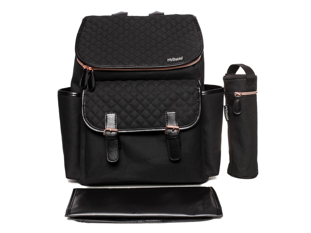 The stylish and practical black quilted backpack changing bag with rose gold detailing provides you with plenty of space to store all your baby's necessities when you're out and about. This backpack changing bag comes with a padded changing mat, insulated bottle holder, a large pocket at the front with 2 side pockets, perfect for all your bits and bobs. The adjustable and padded shoulder straps makes carrying this diaper bag easy and comfortable.