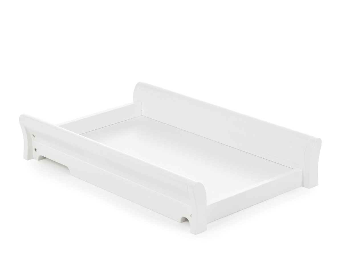 The space used is cleverly modelled to facilitate the use of a baby changing mat up to 76 x 46cm, while smooth surfaces have been utilised throughout to ensure the unit is a breeze to wipe clean. Suitable from birth to approximately 12 months, the cot top changer is fitted by using a simple and secure Velcro strap and offers parents the option of front-facing or side-on changing. The two beautiful sleigh side rails ensure your baby is protected from rolling off and provide a convenient way to lift the changer to wherever you may need it next. The cot top changer is compatible with the Stamford Mini, Classic and most standard cots and cot beds with widths from 62cm up to 76cm.