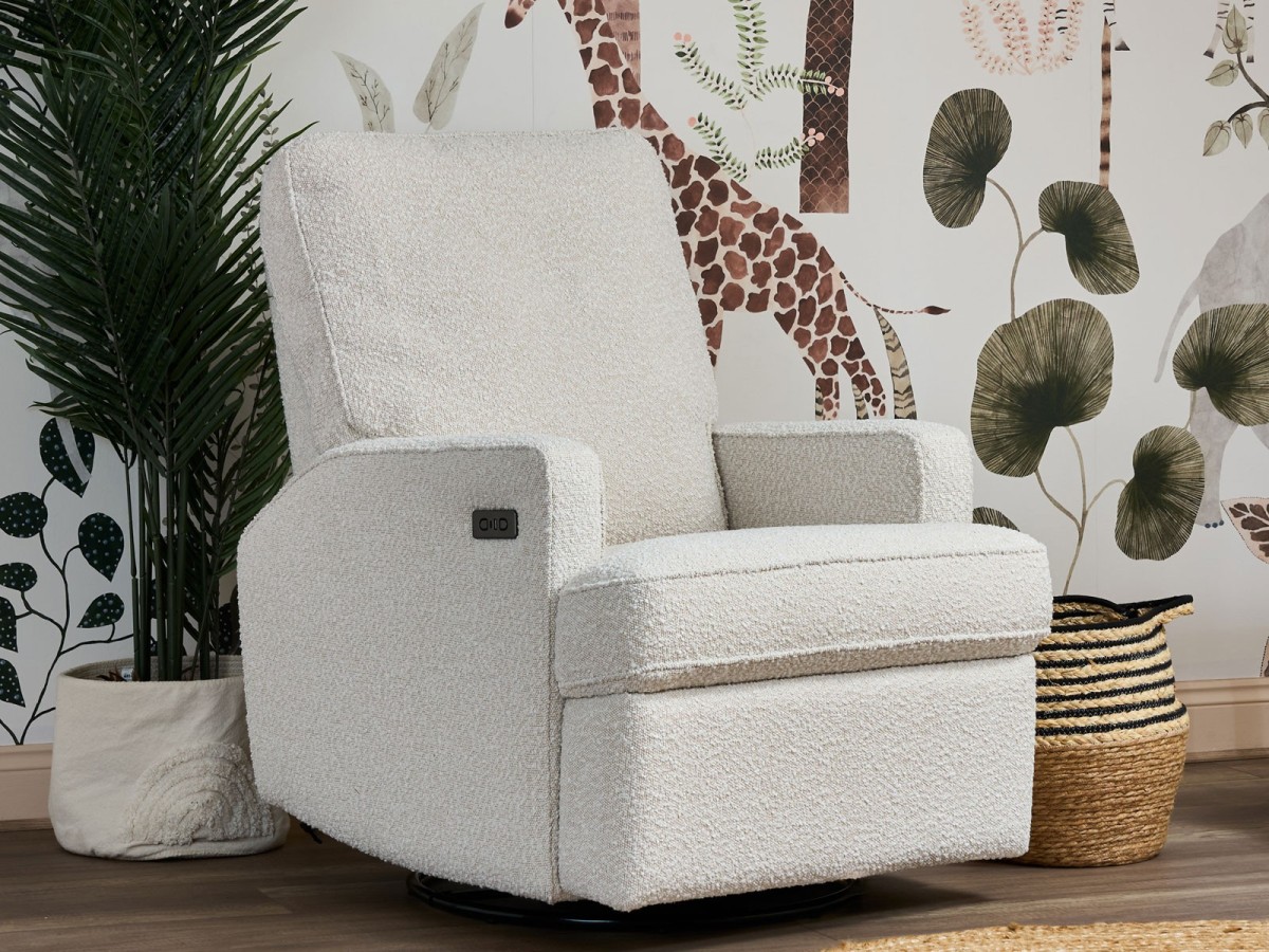 The Madison Electric Recliner Nursery Chair is the perfect addition to any nursery, featuring soft Boucle fabric.