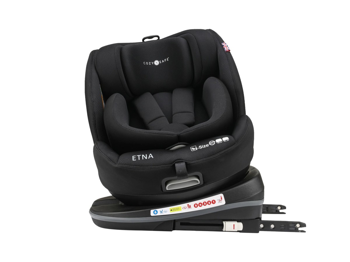 The i-Size seat is installed in most modern cars using the Isofix and Top Tether system until your toddler reaches 105cm, then simply hide the harness and the seat is installed using the vehicles’ 3 point belt. The Etna has an extended rear facing feature allowing you to rear face your baby all the way up to 105cm (approx. 4 years old.) The 360° seat which locks at 90° allows you easy access to your child when putting them in or out the car seat. No more breaking your back bending in and out of the car.