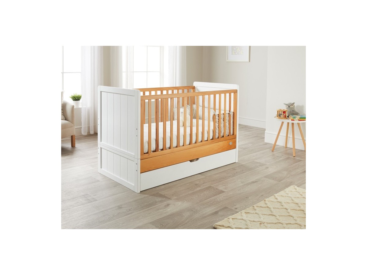 Baby Snooze ABI modern cot bed in White/Natural - Clearance