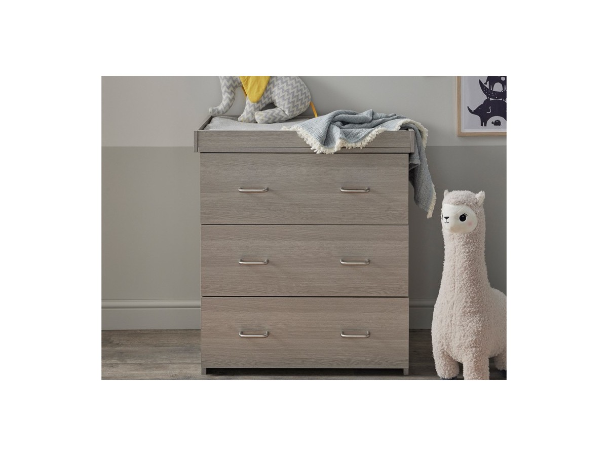 The Caro collection is the ideal starting point for your nursery decor thanks to its timeless style and woodgrain finish. The changer on the Caro Chest of Drawers can be taken off, so once your baby is about 12 months old, you can turn it into a more traditional chest of drawers. There are three full-sized drawers, giving you plenty of space to store all your little one’s clothes.