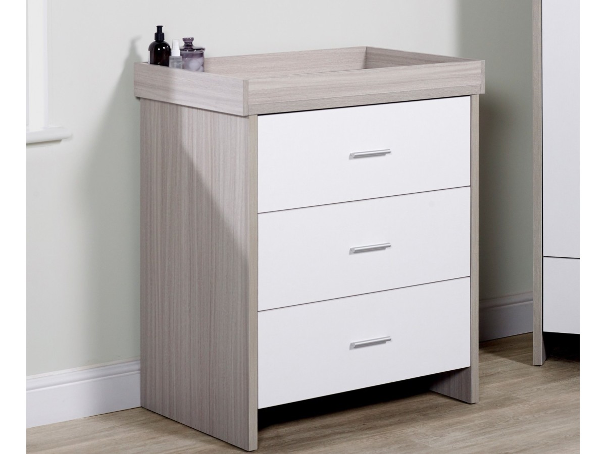 Whatever your personal style, the Pembrey Furniture Collection has an option to suit you. The Chest of Drawers and Changer is available in 3 different colour options, offering you a choice of a full textured oak design or alternatives that include contemporary white detailing.