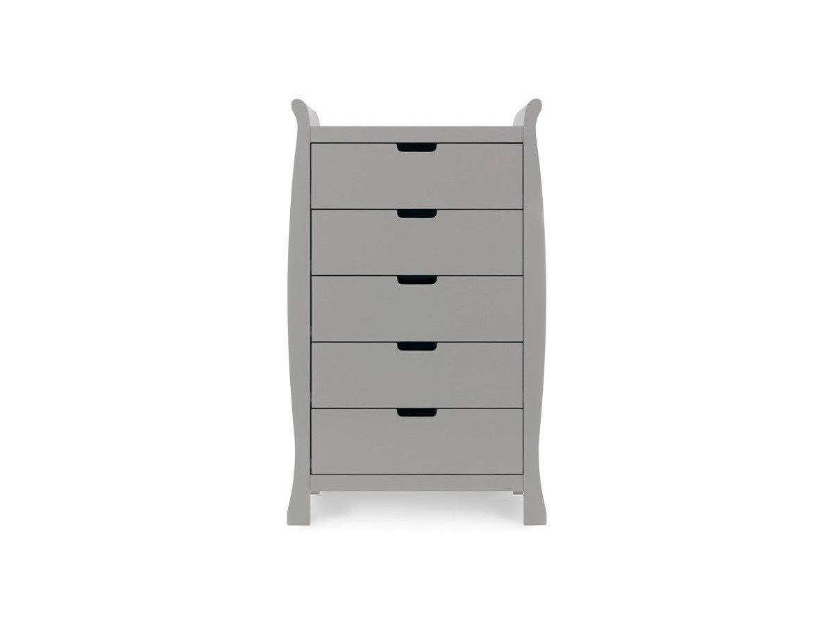 The tall chest of drawers consists of five 24L capacity drawers meaning there is plenty of space to store your little one’s adorable outfits. Smooth gliding runners allow the drawers to be moved effortlessly and the stylish recessed handles ensure that it is snag free and simple to use. The solid constructed top offers the ideal place for cherished photos and precious belongings while the elegant sleigh design coordinates perfectly with all of the other pieces in the Stamford furniture range.