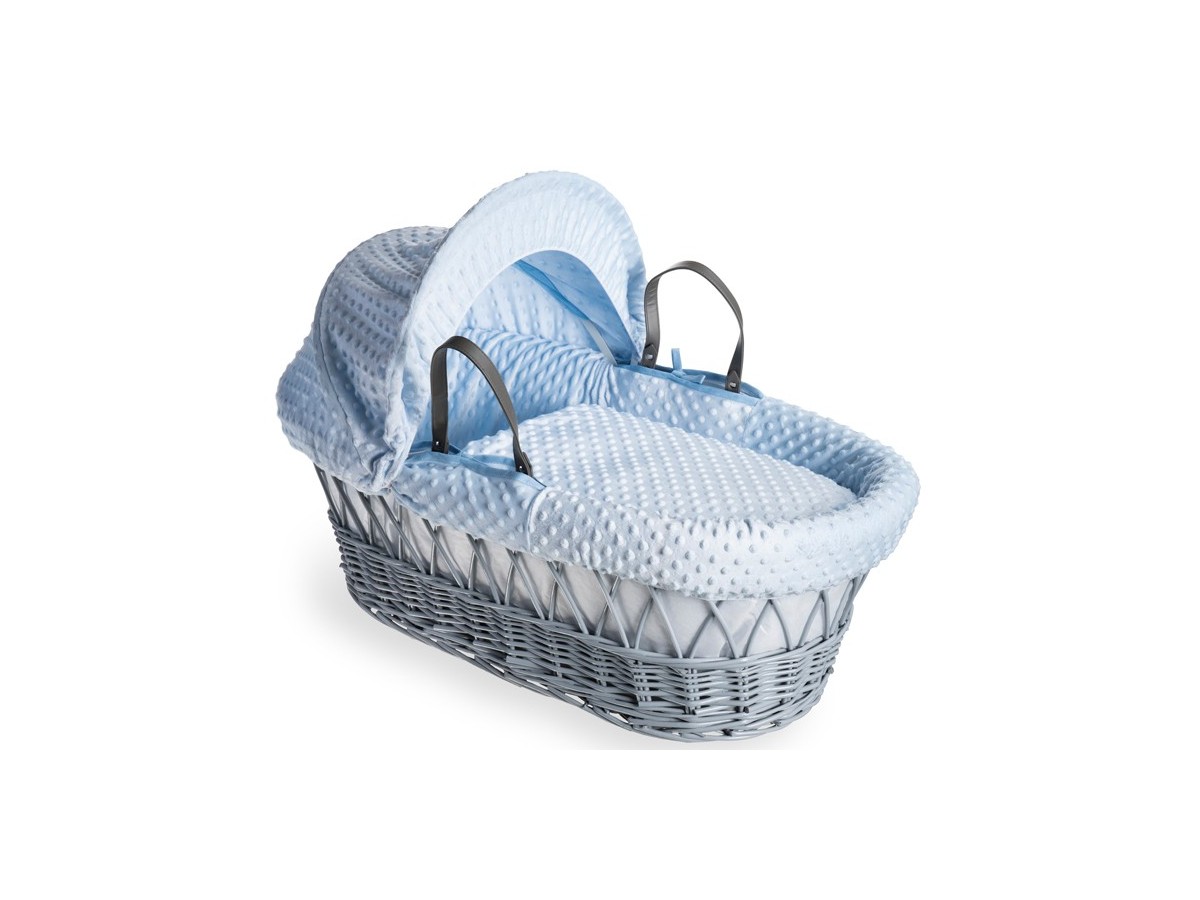 Clair de Lune Dimple Grey Wicker Moses Basket - Cream