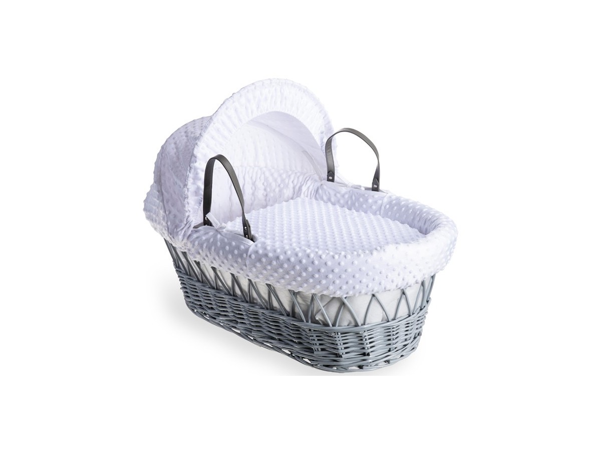 Clair de Lune Dimple Grey Wicker Moses Basket - Blue