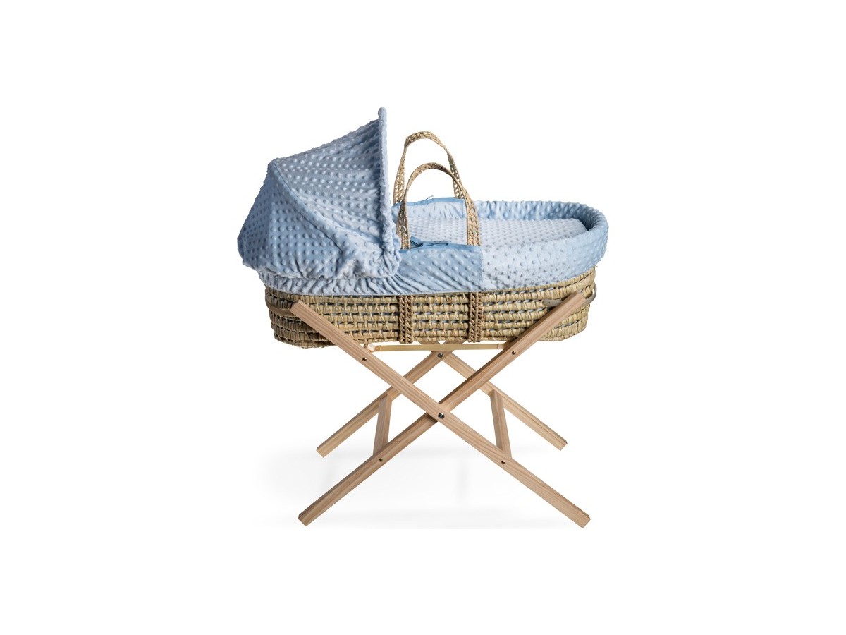 Clair de Lune Dimple Palm Moses Basket & Natural Folding Stand - Blue