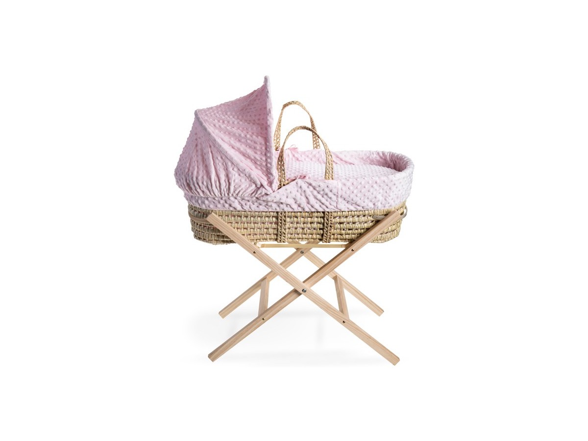Clair de Lune Dimple Palm Moses Basket & Natural Folding Stand - White
