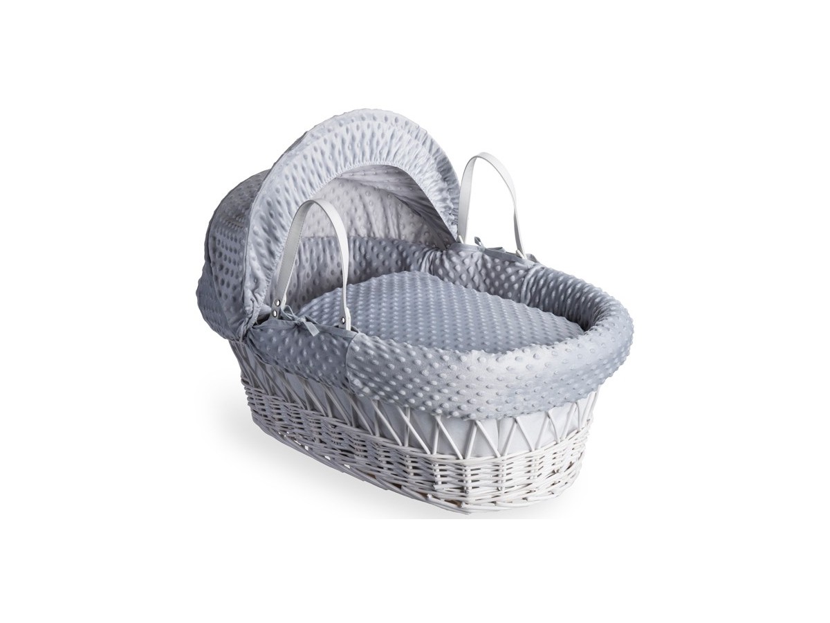 The Dimple Wicker Moses Basket is a symbol of comfort, elegance, and safety. This sturdy and lightweight wicker basket, dressed with super-soft plush dot Dimple fabric, creates a snug and inviting sleep space.