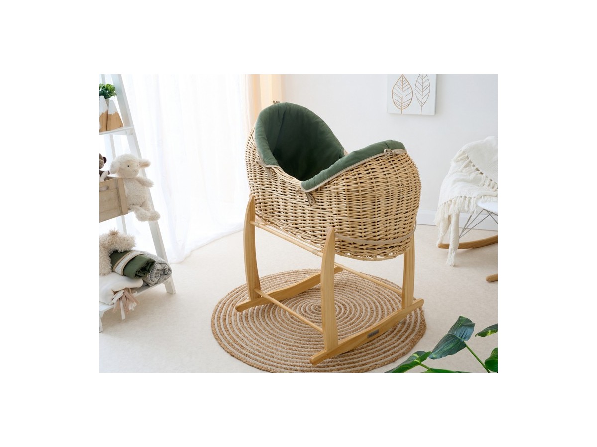 This premium adaptation of a traditional Moses basket is hand-woven from sturdy willow-wicker and hand-dressed by our wonderful team in our Sedex-certified British factory. The luxury organic dressing features a sewn-in padded lining which protects the wicker basket internally and externally, for both baby and carrier comfort.