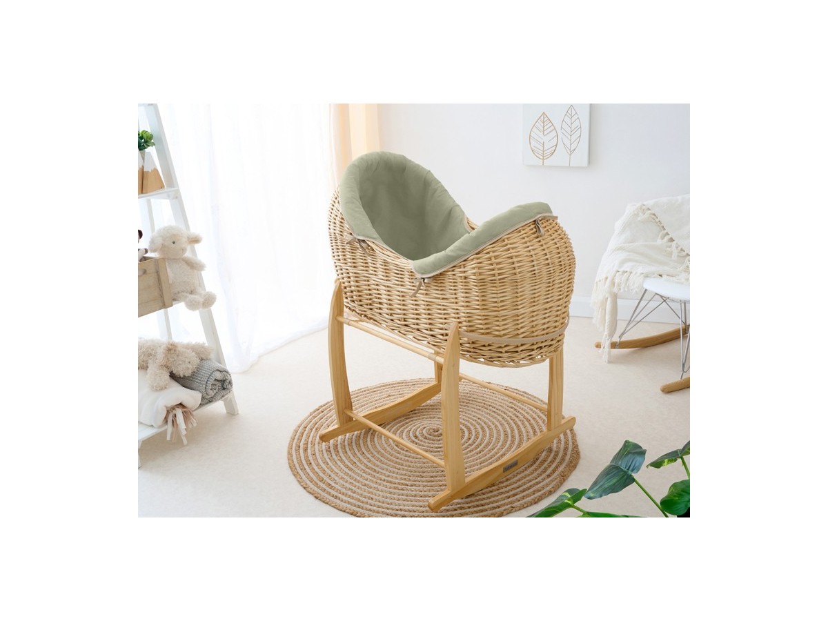 This premium adaptation of a traditional Moses basket is hand-woven from sturdy willow-wicker and hand-dressed by our wonderful team in our Sedex-certified British factory.  The luxury organic dressing features a sewn-in padded lining which protects the wicker basket internally and externally, for both baby and carrier comfort.