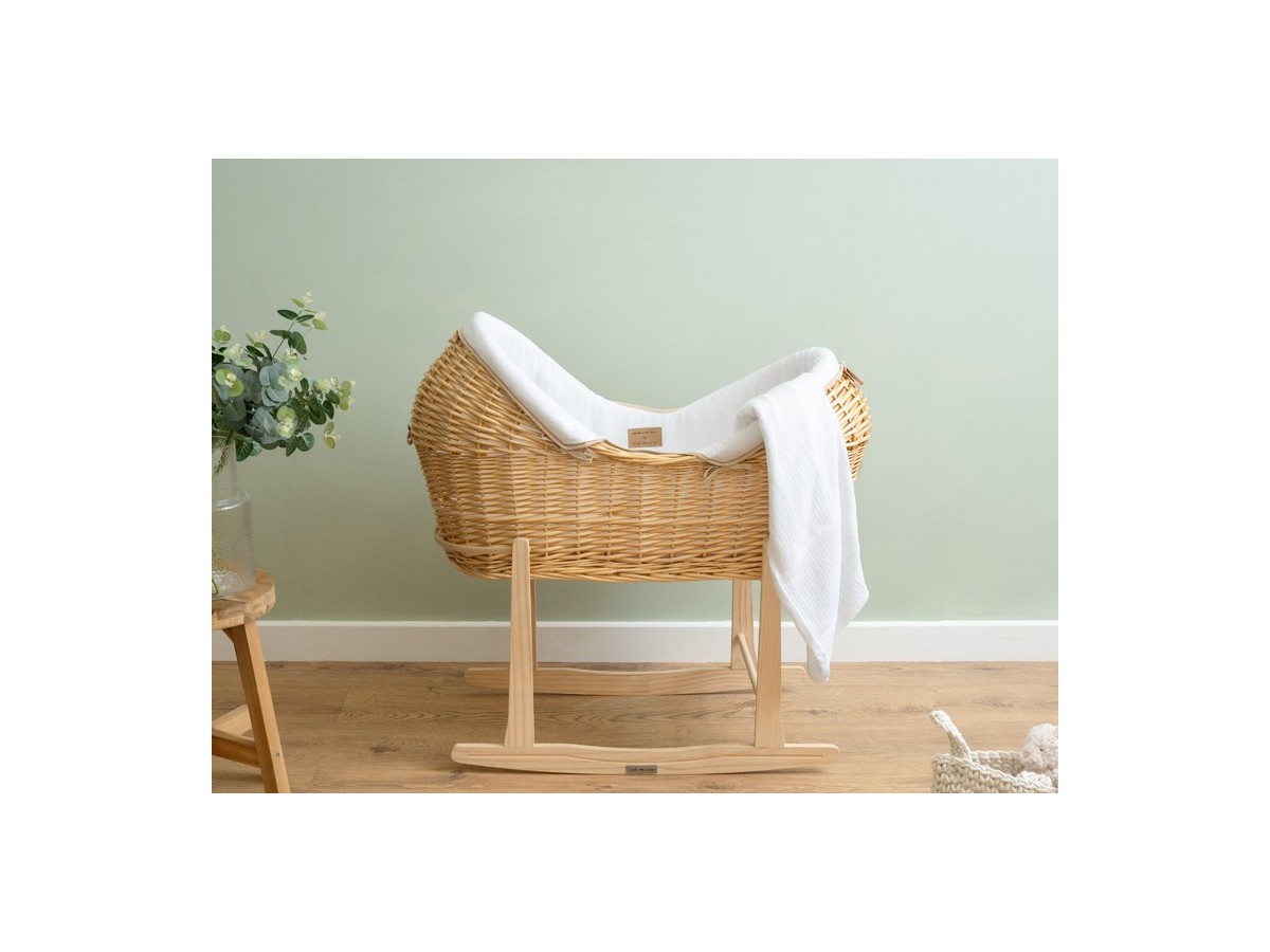 This premium adaptation of a traditional Moses basket is hand-woven from sturdy willow-wicker and hand-dressed by our wonderful team in our Sedex-certified British factory. The luxury organic dressing features a sewn-in padded lining which protects the wicker basket internally and externally, for both baby and carrier comfort.