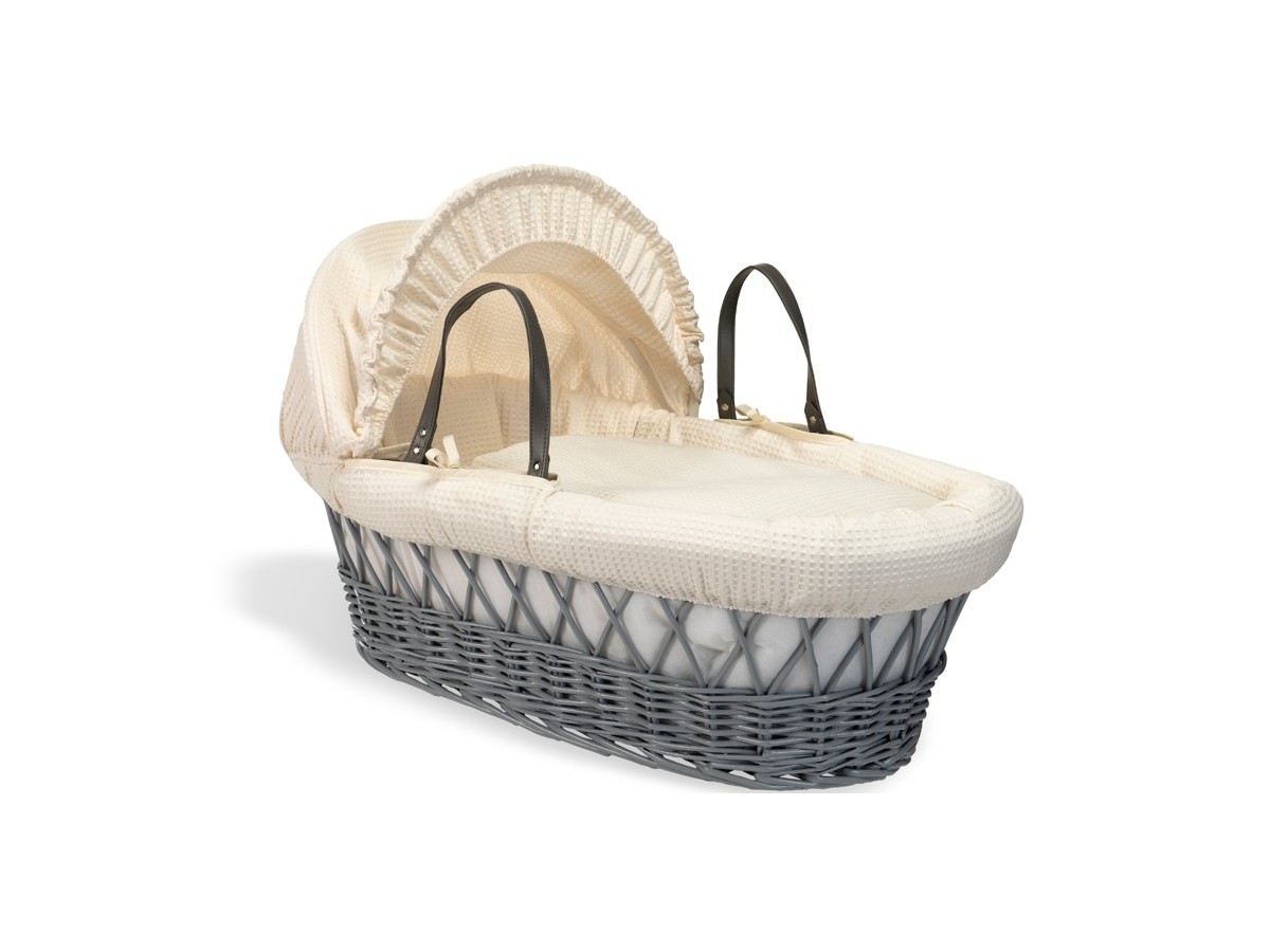 Clair de Lune Waffle Grey Wicker Moses Basket - Blue