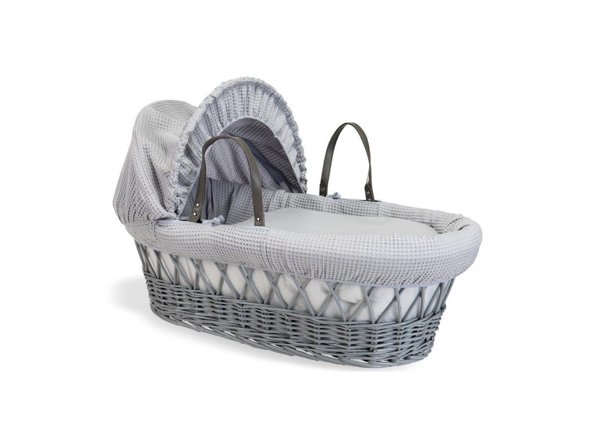 Clair de Lune Waffle Grey Wicker Moses Basket - Blue