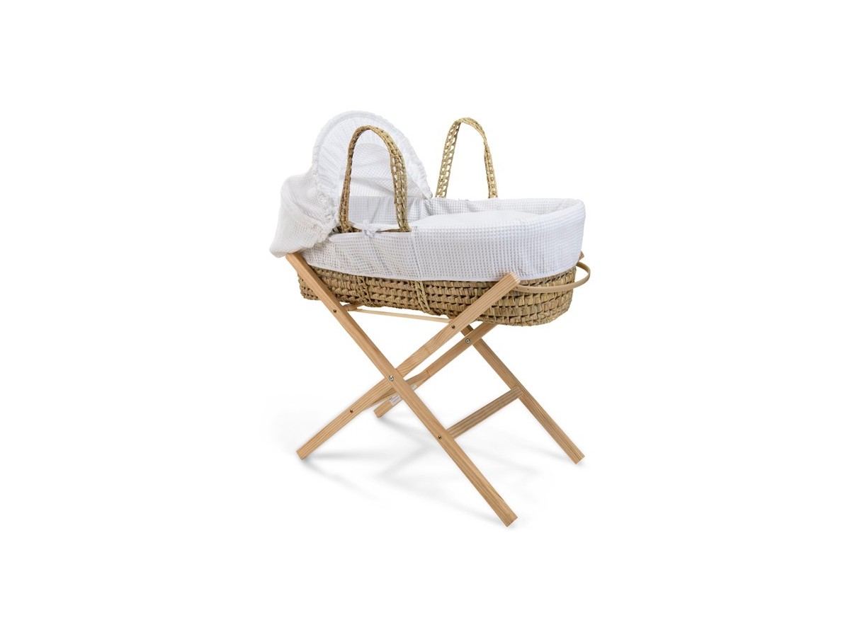 Clair de Lune Waffle Palm Moses Basket & Natural Folding Stand - Pink