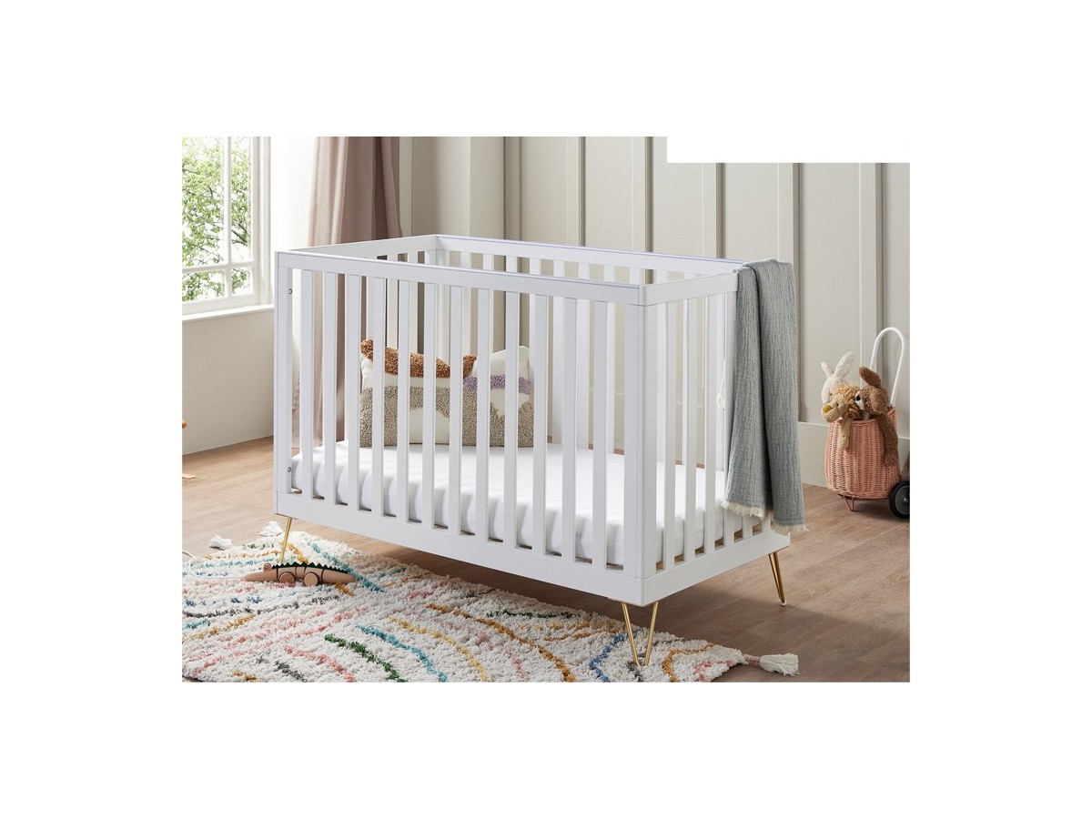 The stunning Babymore Kimi convertible cot bed will be the standout piece of furniture in any nursery. An exquisite combination of contemporary wooden style and retro hairpin legs all blend seamlessly to provide a striking fashion statement. The Scandi-inspired cot bed has been stylishly designed with retro hairpin legs. It offers 3 adjustable mattress heights, teething rails, and can be transformed into a toddler bed, suitable from birth to 4 years old. The hairpin legs are made of high quality steel wire, stable, sturdy and durable, and come with floor protectors included. The Kimi Cot Bed is available in three stylish finishes, Acrylic , White and Midnight, giving an option for all tastes.