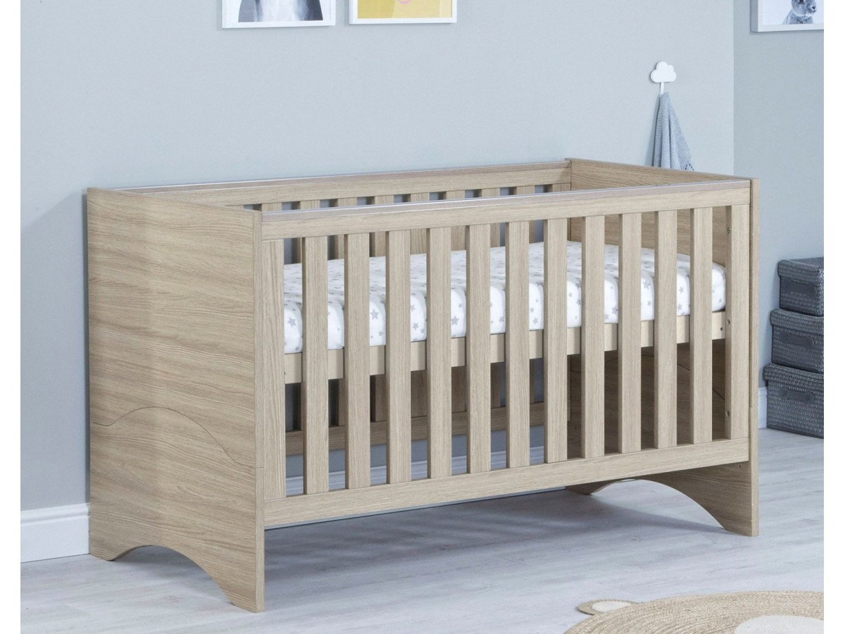Babymore Veni cot beds offers a modern, warm, and clean design, with its neat lines and a beautifully textured Warm Oak wood effect finish. It will sit stylishly in your baby’s nursery.