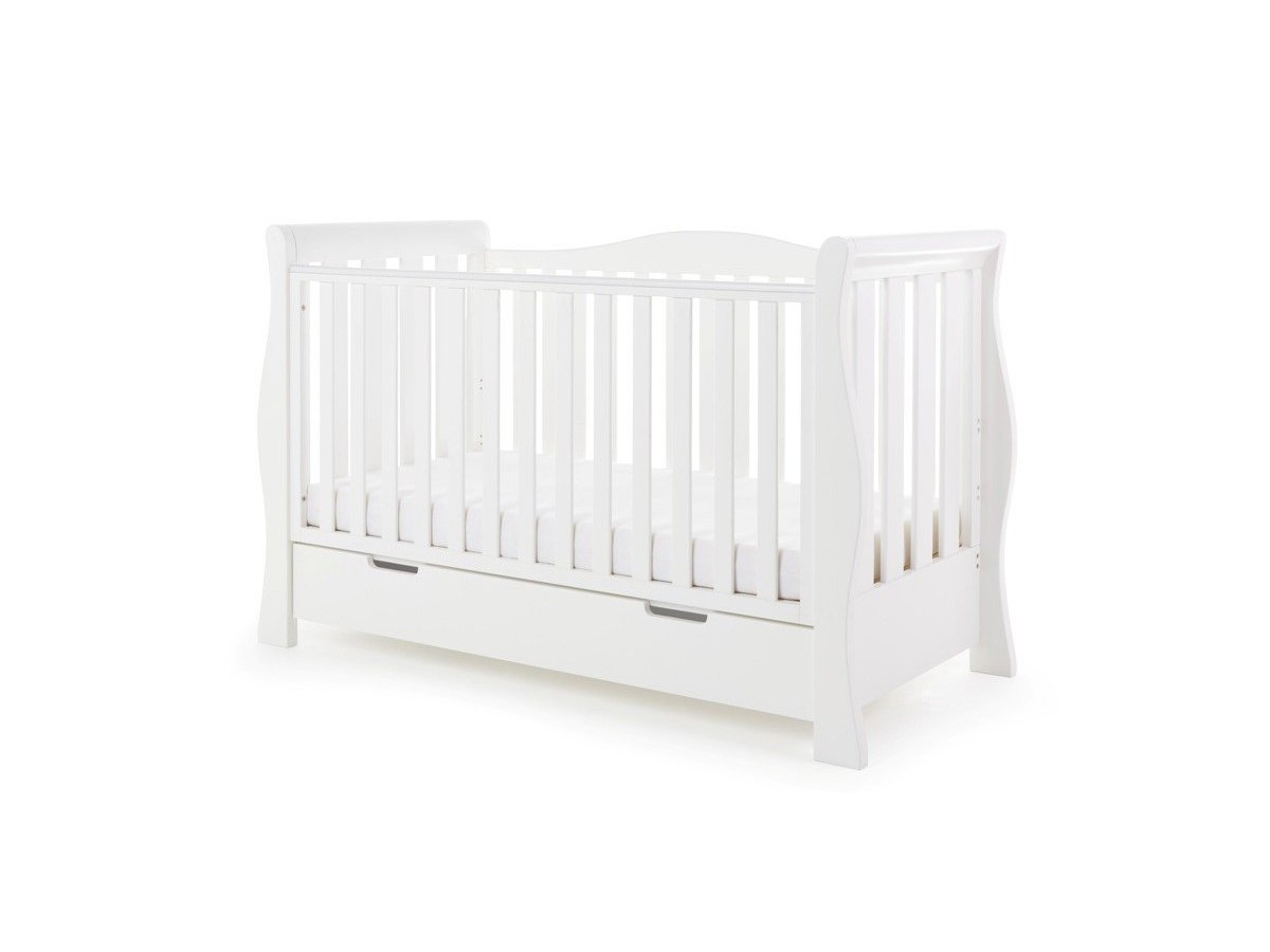 Standing proud at the top of the range is the beautiful Stamford Luxe sleigh cot bed, crafted from thick, solid pine and featuring deluxe hand carved ends that flow perfectly into the curved rear side rail