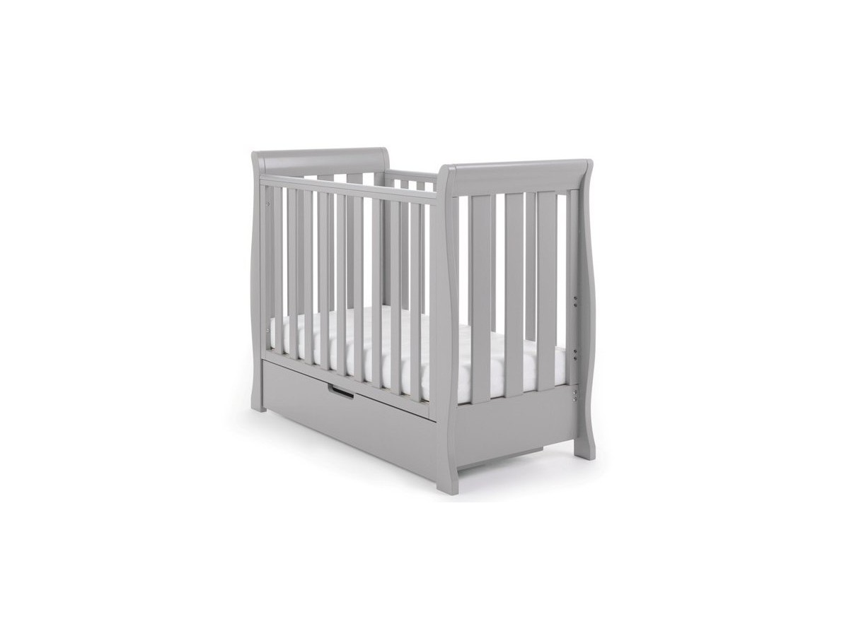 Needing less space than the Stamford Mini cot bed, the Space Saver cot features the same elegant sleigh design as the rest of the collection, teething rails to protect your little ones delicate first teeth and a three-position adjustable mattress base. The top position allows your newborn to be put down and taken out of the cot easily without unnecessary bending, then as your child grows, learning to sit and stand, the base can be lowered by a further two positions providing extra security and reassurance all the way up to approximately 18 months old. Requires an Obaby 100 x 50cm mattress.