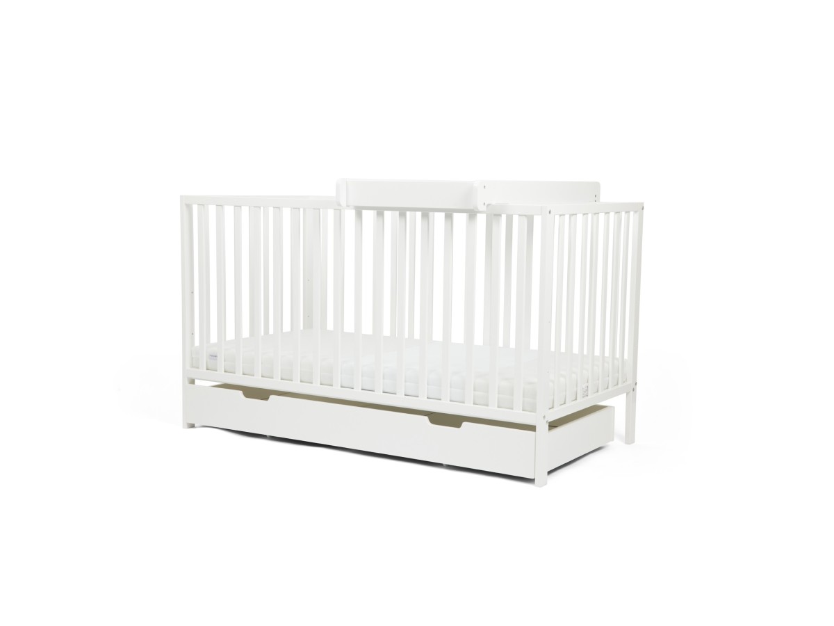 The handy storage drawer slides effortlessly out from under the cot, meaning you can have all manner of accessories close to hand but hidden away to keep baby’s room free from clutter. The additional cot top changer can be laid over the cot sides and secured to ensure it doesn’t come loose, creating an impromptu space for all those nappy changes.