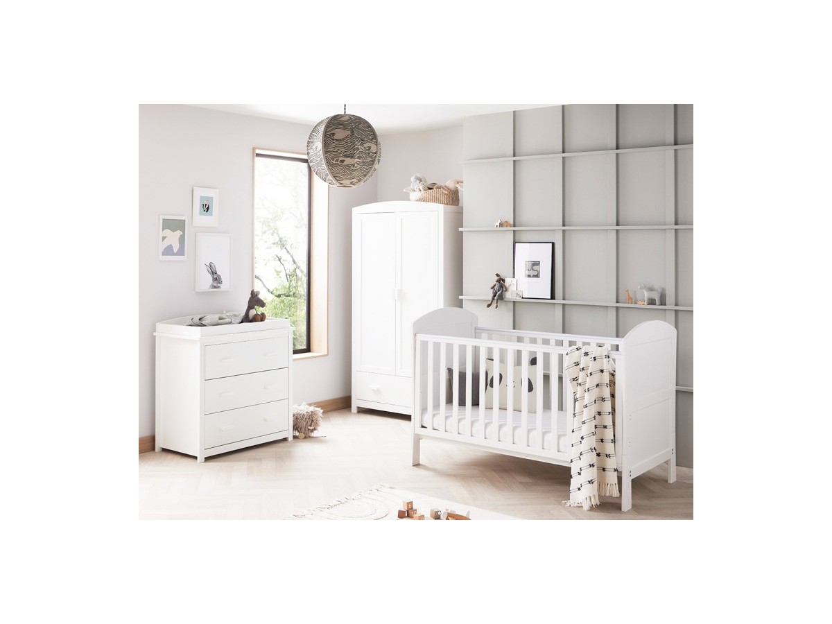 Introducing the Aston three-piece room set, which includes a beautiful dropside cot bed as well as a practical chest changer and spacious wardrobe.