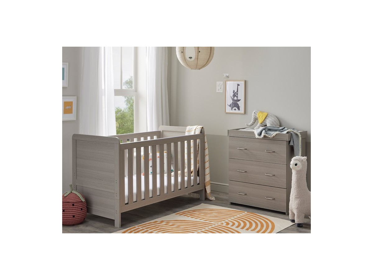 The Caro nursery collection is the ideal starting point for your nursery decor thanks to its timeless style and woodgrain finish. A stylish cot bed and versatile dresser are included in our Caro 2-piece nursery set. This cot will easily last through the first five years of your child's life thanks to its three height settings and ability to be transformed into a toddler bed. The dresser's changing top is detachable, transforming it from a practical baby changing unit into a chic dresser for displaying your child's treasured possessions.