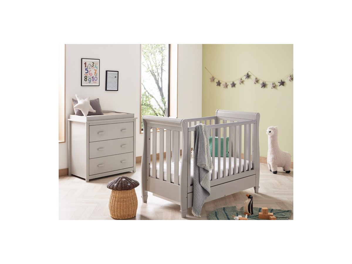 The sleek and stylish sleigh cot bed will transport you and your baby to a world of cosy dreams and peaceful slumber. With its smooth curves and elegant design, this cot bed is more than just a place to sleep; it’s a sanctuary for your little one. Crafted from high-quality materials, this cot bed is built to last and ensure your baby’s safety and comfort for years to come. With three mattress positions, a functional drop-side plus the ability to transform into a toddler bed, this piece of furniture will last you until your little one is ready to move into a full size single bed.