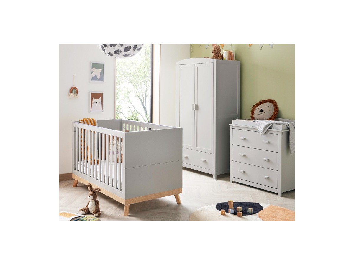 Mona cot bed, chest changer, and wardrobe set, perfect for creating a cozy and functional nursery for your little one. Designed with both style and practicality in mind, this set offers plenty of storage space and a comfortable sleeping space for your baby, while also complementing any décor scheme.