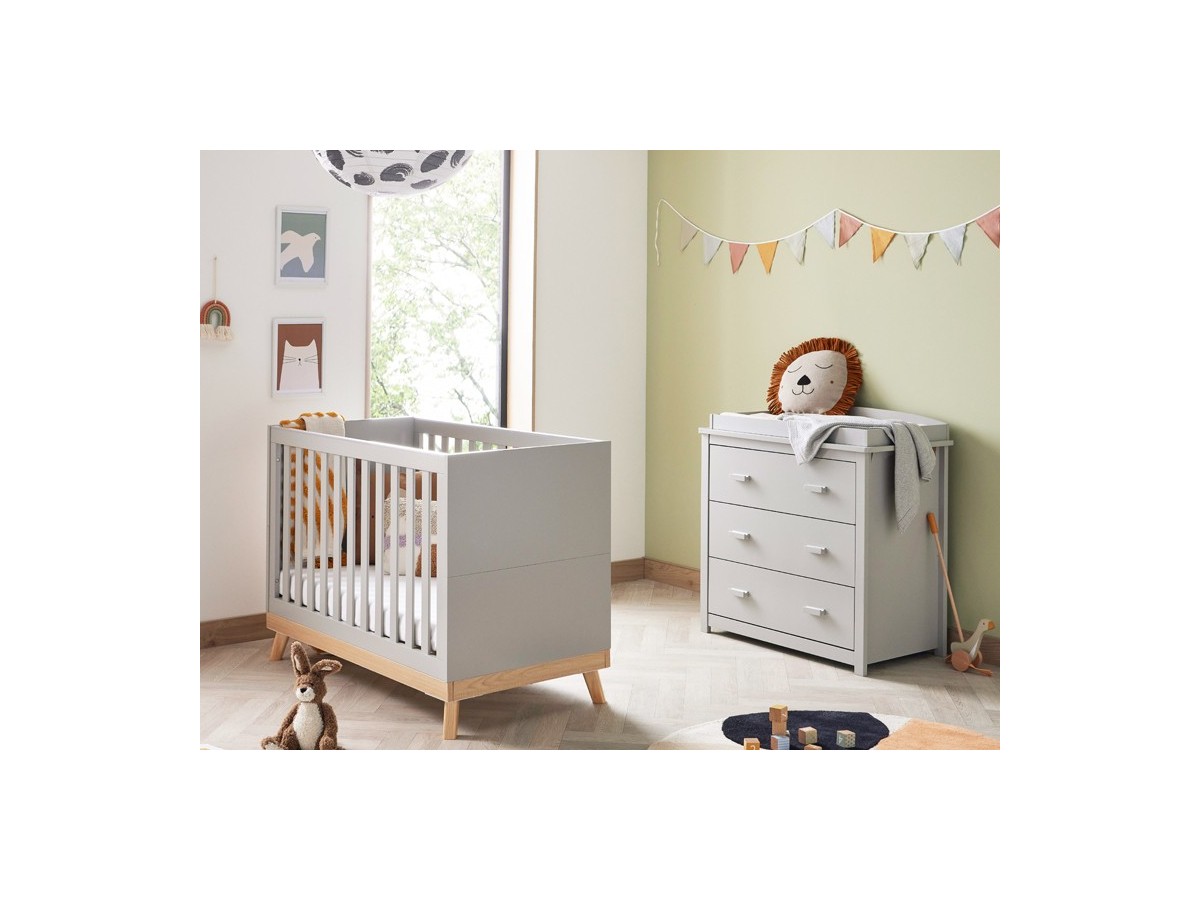 The Mona Mini Cot Bed and Chest Changer Set is the perfect addition to a baby’s room or nursery. This set is made to give parents durable, useful and stylish pieces of furniture for their children. The mini cot bed offers the perfect solution for parents where space is at a premium. The mini cot bed is made with sturdy materials, ensuring your child’s safety and comfort throughout their early years. It features adjustable height settings, which can be easily modified to suit your growing child’s needs. Teething rails on either side help to protect the wood from a teething little one. The cot bed can also be easily converted into a toddler bed, ensuring that it can be used for years to come. The Mona Mini Cot Bed is compatible with any of the Babymore 120 x 60 cm mattress range. The accompanying chest changer is equally impressive, providing ample storage space for your child’s clothes, toys and other essentials. The chest features a removable changer, allowing it to take on a more grown-up appearance once baby gets a little older. Our Mona Mini Cot Bed and Chest Changer Set is not only practical but also aesthetically pleasing. It’s the perfect blend of form and function, making it an ideal choice for parents who want to create a beautiful and practical space for their little ones. Whether you’re a new parent or looking to upgrade your child’s bedroom, our mini cot bed and drawers set is the perfect choice for you.
