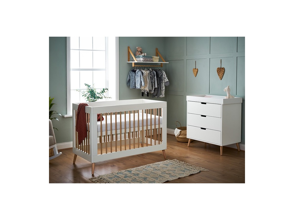 The Maya range from Obaby is inspired by Scandinavian design, featuring a clean-cut finish and two-tone colourway, making it the perfect addition for families looking to create a modern and stylish nursery. The Maya Mini 2 piece room set consists of the Maya Mini cot bed and changing unit.