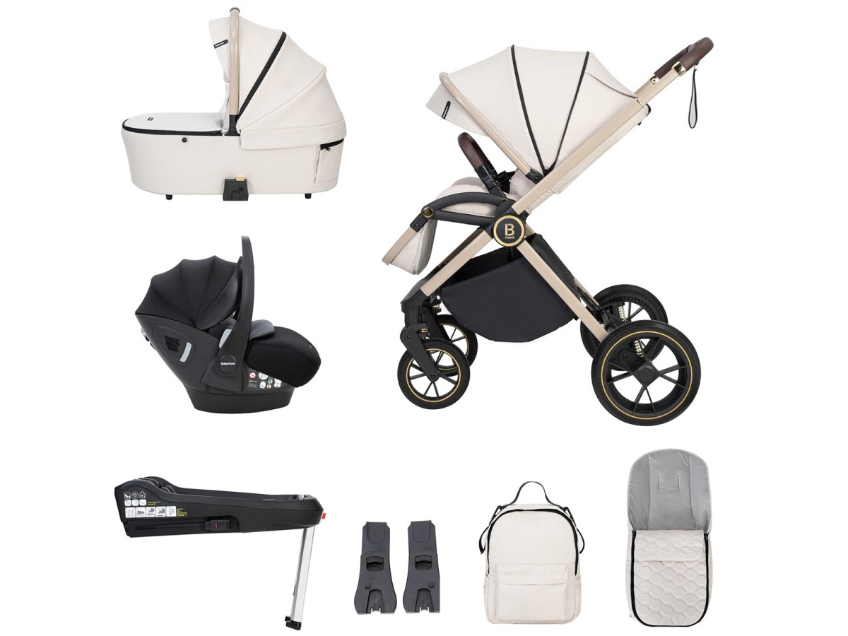 This beautiful bundle includes: chassis, seat unit, carrycot, car seat adaptors, Pecan i-Size infant car seat, Isofix base, footmuff, raincover and changing bag.